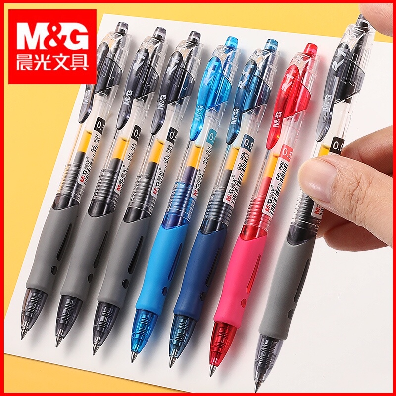晨光0.5mm按动中性笔签字笔墨蓝色红笔学生用碳素黑k35按动式蓝黑色医生处方笔按动笔芯水性圆珠笔
