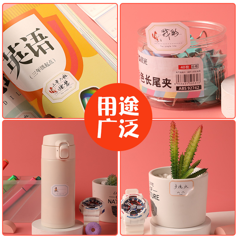 犁人文具专营店卡通防水姓名贴儿童空白标记可爱口取幼儿园手账杯子分类标记自粘记号贴小学生标签纸手写水杯名字标签贴纸