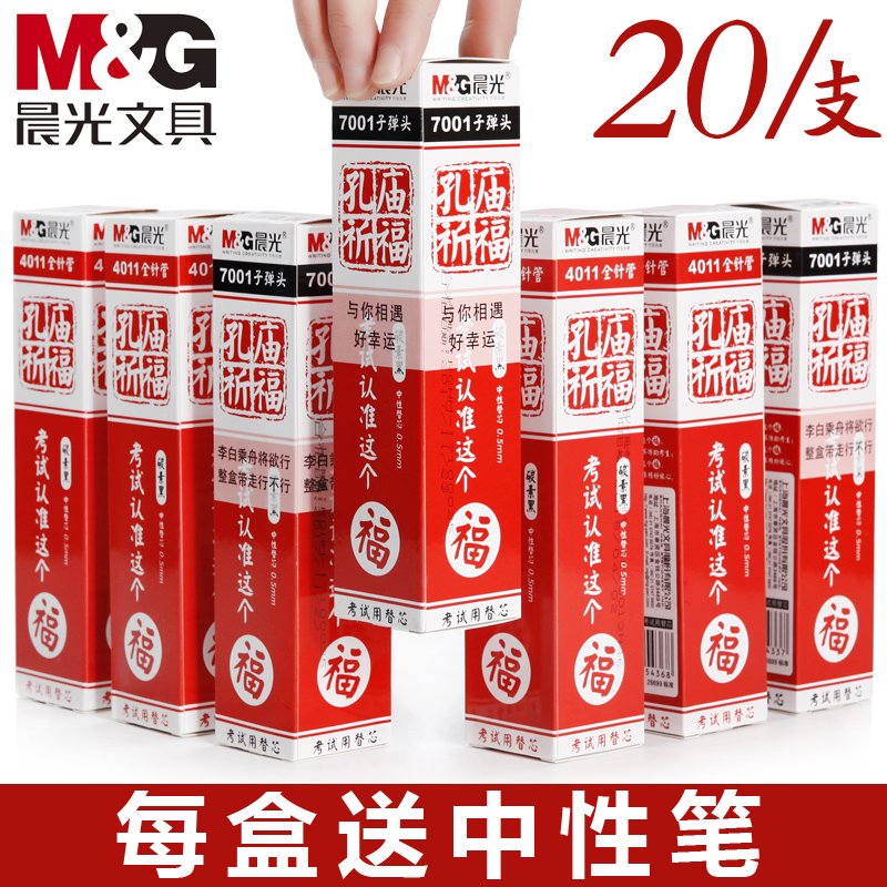 • 犁人文具专营店晨光中性笔水笔芯黑0.5蓝全针管0.35细笔黑色心0.38mm盒装优品碳素签字墨蓝极细学生用0.7孔庙祈福34/4