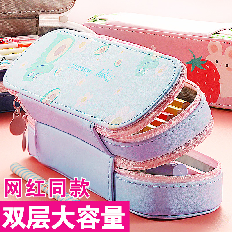 犁人文具专营店双层大容量笔袋女简约ins潮防水韩版初中小学生文具盒儿童少女心可爱铅笔盒男孩创意个性卡通小清新文具袋
